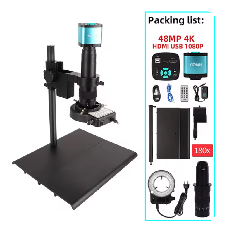 Microscope Set For Phone Soldering PCB Repair, 48MP 4K HDMI USB 1080P Digital Video Microscope Camera, 180X C-Mount 56LED Microscope Set
